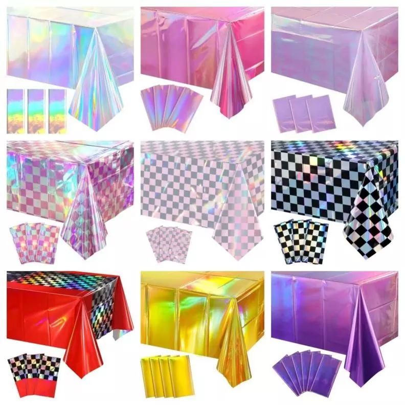 Aluminiumfilm tafelkleden hebben veel stijlen, waaronder cartoonstijlen en gewone stijlen. Er zijn ook veel kleuren. Ze worden meestal geëvenaard met wegwerp servies, ballonnen, enz. Van dezelfde kleur die overeenkomt met unieke feestdecoraties